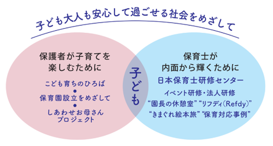 私たちの活動は、子どもを真ん中にして、保護者と保育士に向けたサポートや学びの機会づくりをしています。将来的には、こどもの育ちを支える場所づくり(保育園など)を目指して活動をしています。